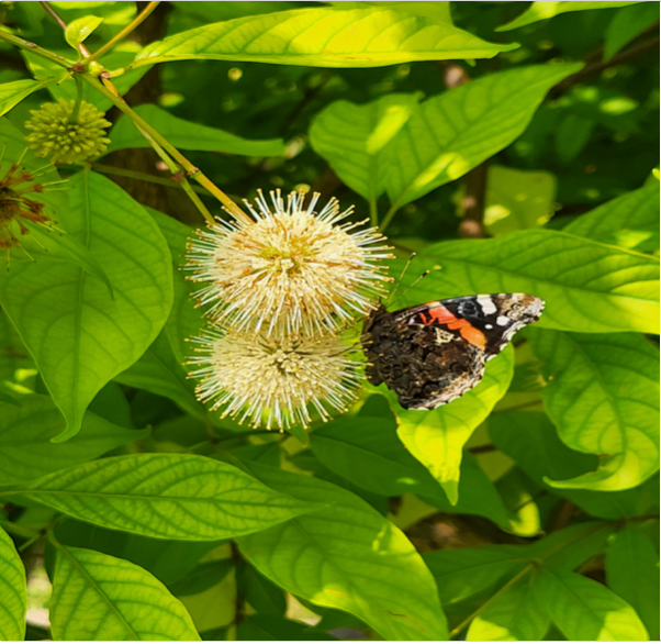 Wonderful large shrub with a nice small tree shape. Attracts many different bees and butterflies. It does well in average soil but prefers moist to wet soil. The blooms are magical!! Native to KY.